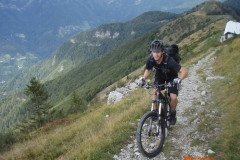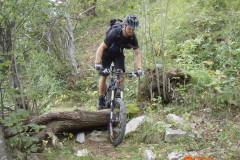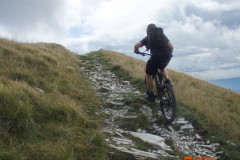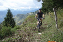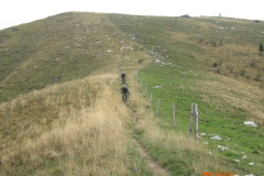 Spust z vrha po grebenu so nam prekrižale krave, ki se niso imele namena umakniti. Po „tehtnem“ premisleku smo ugotovili, da je bolje, če ta del odpeljemo na drugi strani ograje. Nadaljevanje spusta je lepa enoslednica z izjemo krajšega dela na katerem so stopnice. Nadaljuje se tekoč in dokaj nezahteven spust. Boris, hvala za dve lepi turci in dopolnitev vreče iz katere izbiram ture.