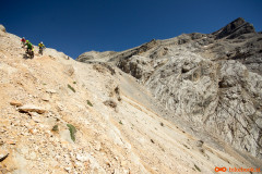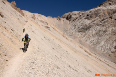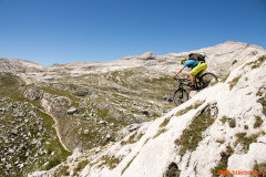 Tako na oko je spust po melišču izgledal obetaven vendar je pogled na planince, ki so se prav nerodno kobacali čez določene dele, v našo samozavest vnesel nekaj nemira. Realnost je bila bolj razveseljiva, sicer strm spust po melišču s slabim oprijemom je ponujal veliko užitkov in le dvakrat smo sestopili s kolesa za kak meter. Nadaljevalo se je po razritem melišču in precej uničeni poti zaradi vode. Luknje so bile na določenih mestih tudi do meter globoke, nova uhojena pot pa le kak decimeter levo ali desno. Slalom med luknjami, skalami in štrlečimi koreninami smo uspešno zvozili. Dokaj hitro smo pristali na makadamski in kasneje še na asfaltni cesti in se obrnili nazaj proti kampu. Na srečo je ob glavni cesti speljana makadamska, sprehajalno kolesarska pot da se nam ni bilo potrebno voziti po prometni cesti. Današnji pregled statistike je še nekoliko slabši kot včerajšnji, od dobrih tisoč štiristo višincev smo jih nosili približno tisoč sto. Odličen vikend z veliko razglednimi spomini.